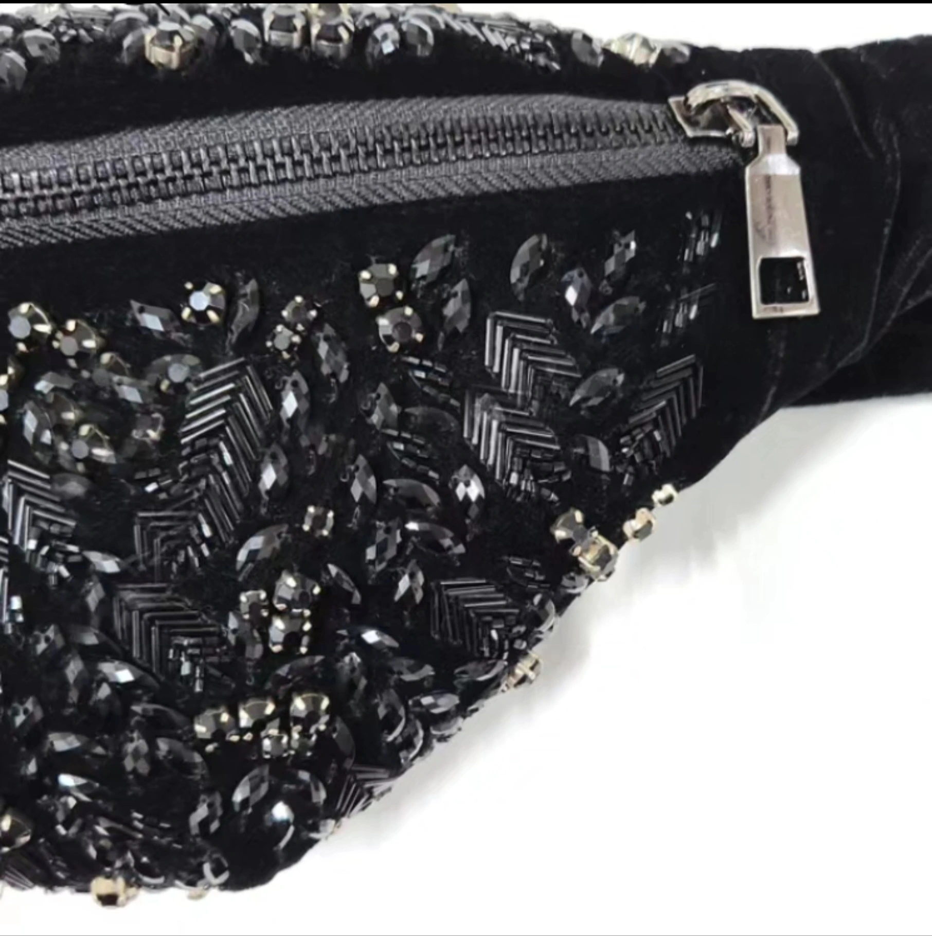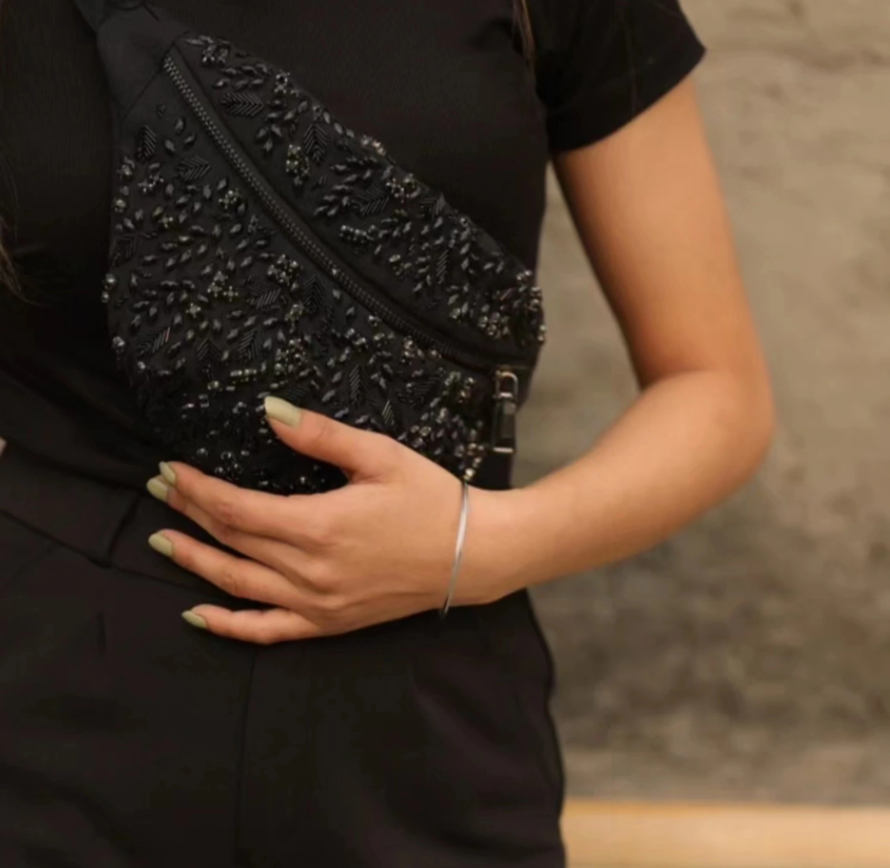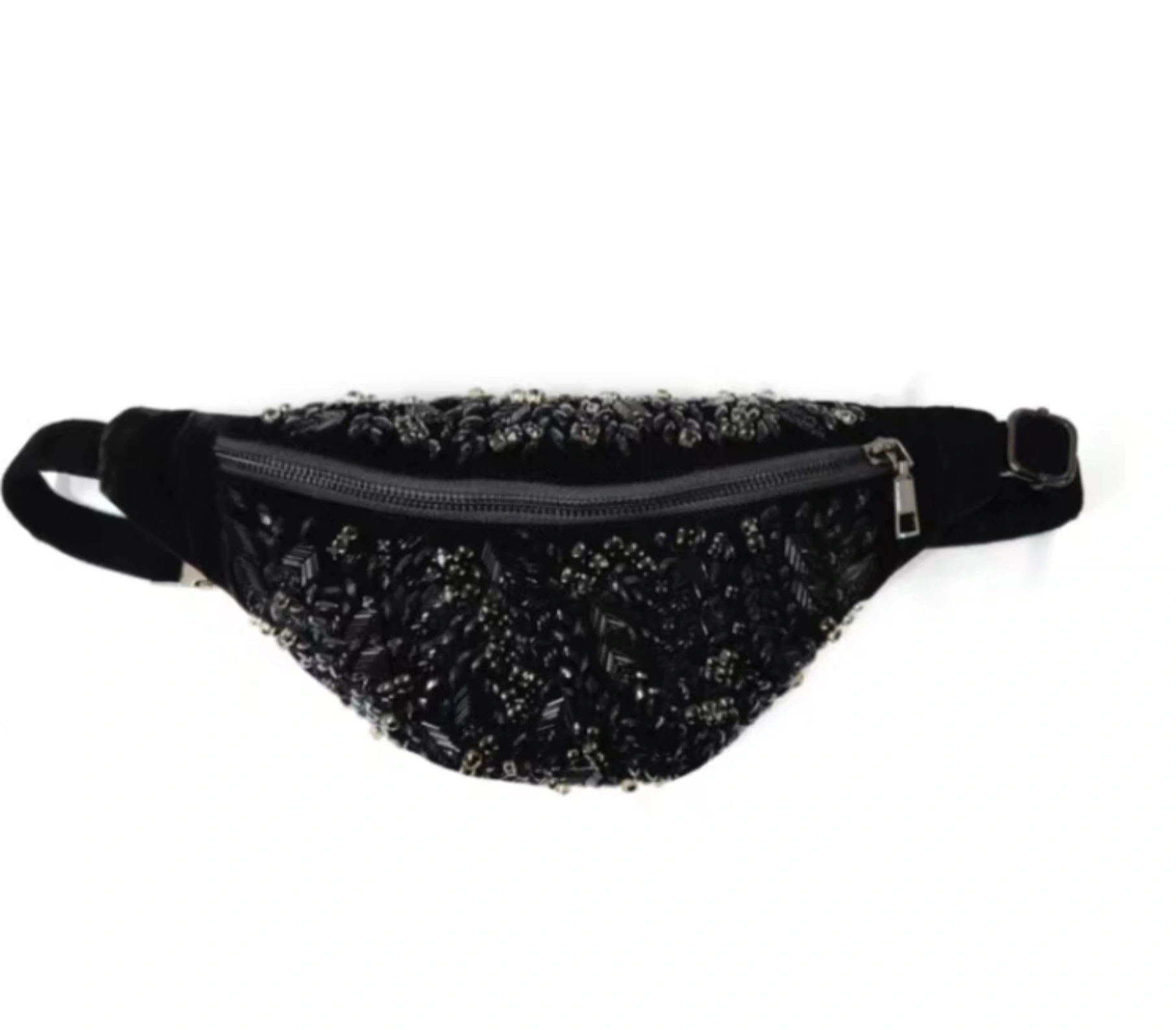 All black crystal sling bag