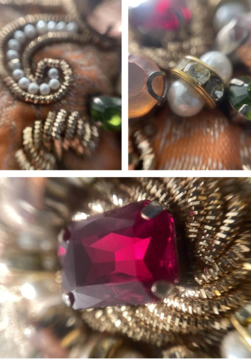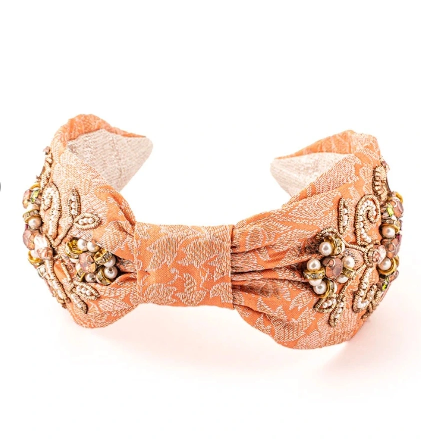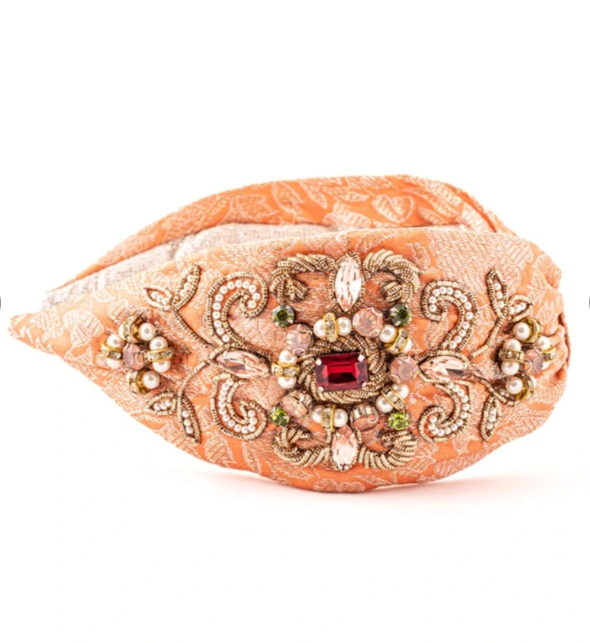 / Peach brocade embellished
